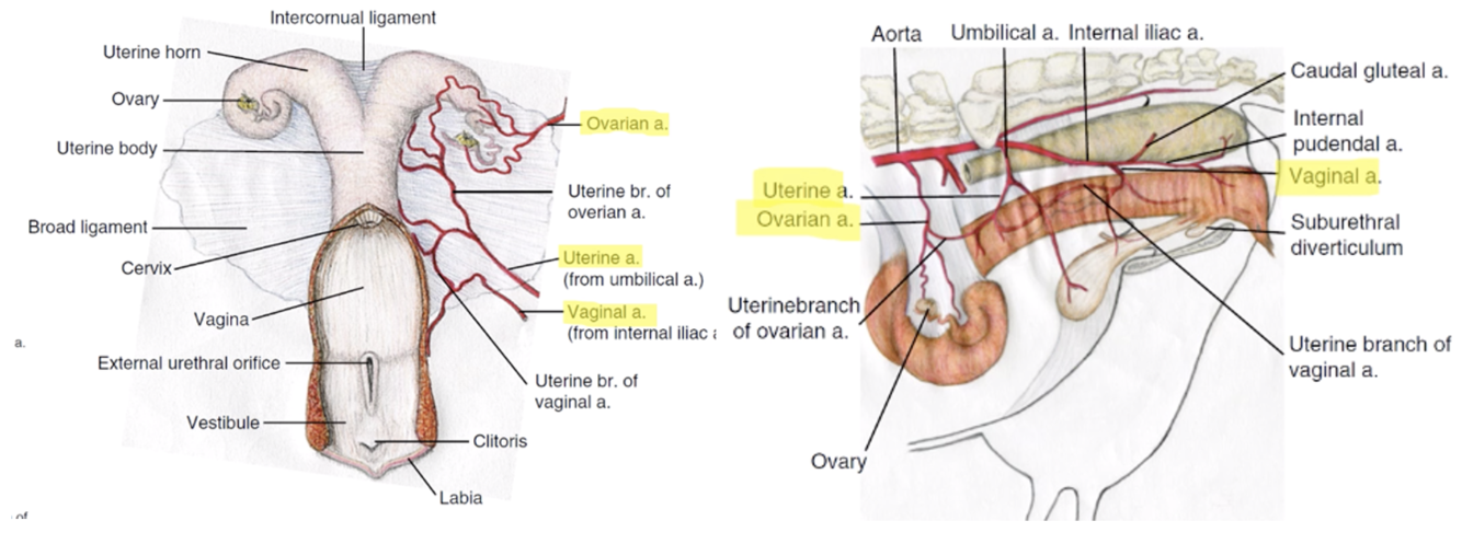 - Don’t have specific uterine artery, uterus only supplied with blood from branches of ovarian and vaginal arteries