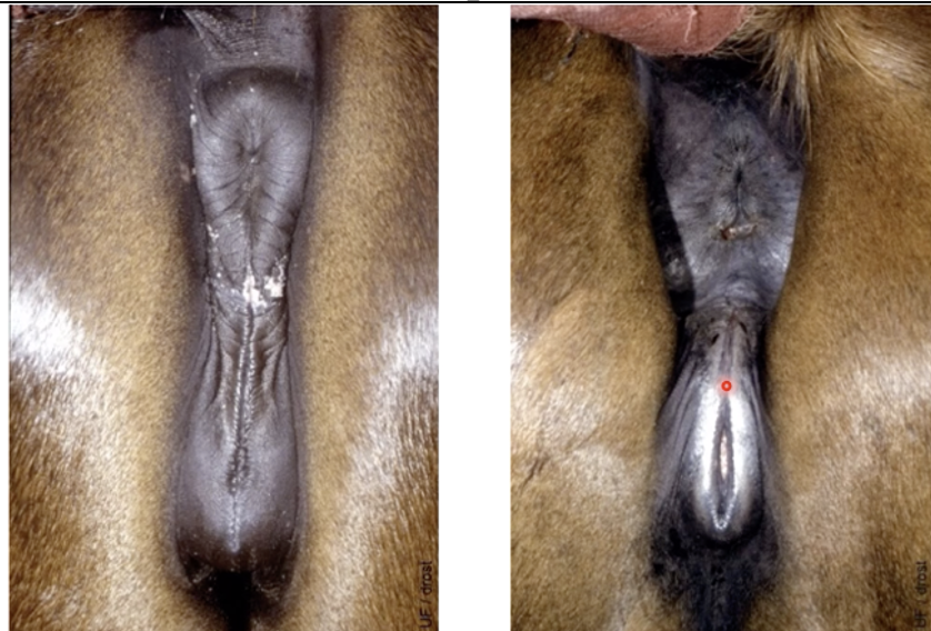 Vulva becomes red, swollen in response to hormone E2 in receptive females