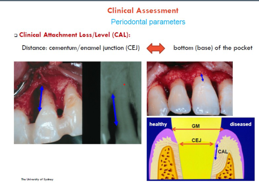 It’s not always visible you might have false readings from pseudopockets. so practice loctaing it. When measuring CAL- CEJ is crucial.