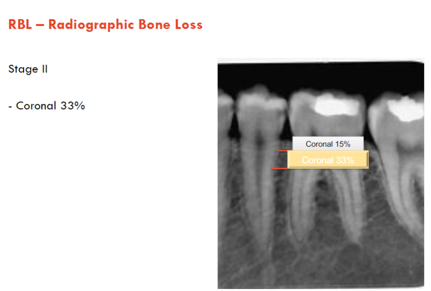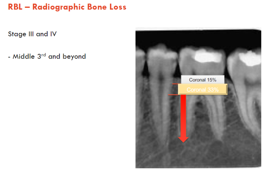 pockets (if we don’t have CAL then look at RBL) + 30% bone loss