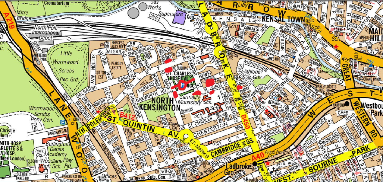 St.Helens Gardens Two Way Area: Oxford Gardens Departure details: North LorR St.Quintin Ave East into Cambridge Gardens (LorR St.Marks road) South F Bramley road to St.Anns road