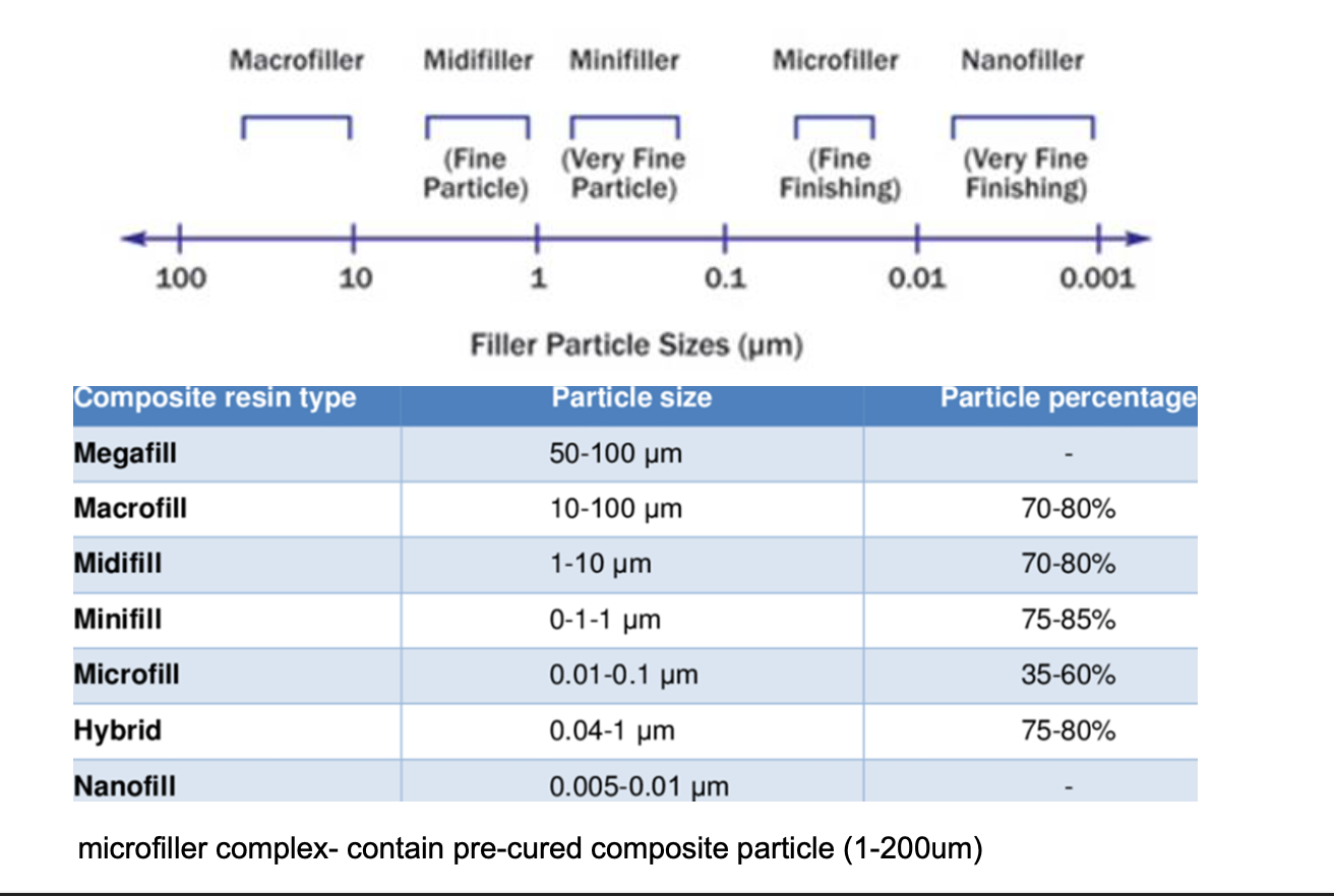 The size of the fillers determines the aesthetics and polishability of the filling material