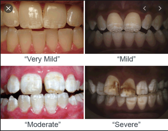 Enamel hypoplasia, fluorosis, amelogenesis imperfecta, enamel opacities, demineralisation, hypo mineralisation
