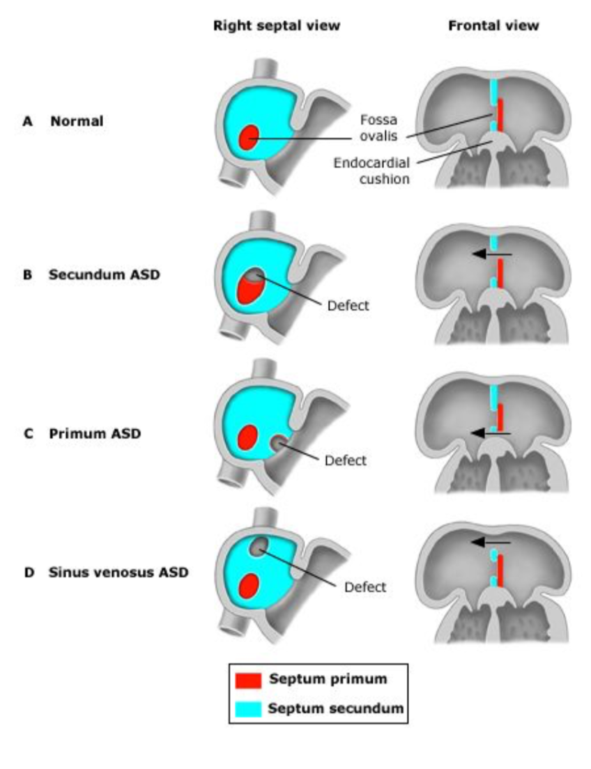 with the endocardial cushions, which leaves a defect at the base of the interatrial septum(typically large)