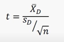 t = X[mean]diff / (SDdiff / √n)