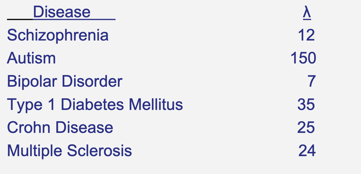 4. Give examples of Risk Ratios for Siblings of Probands with Complex Diseases with Familial Aggregation