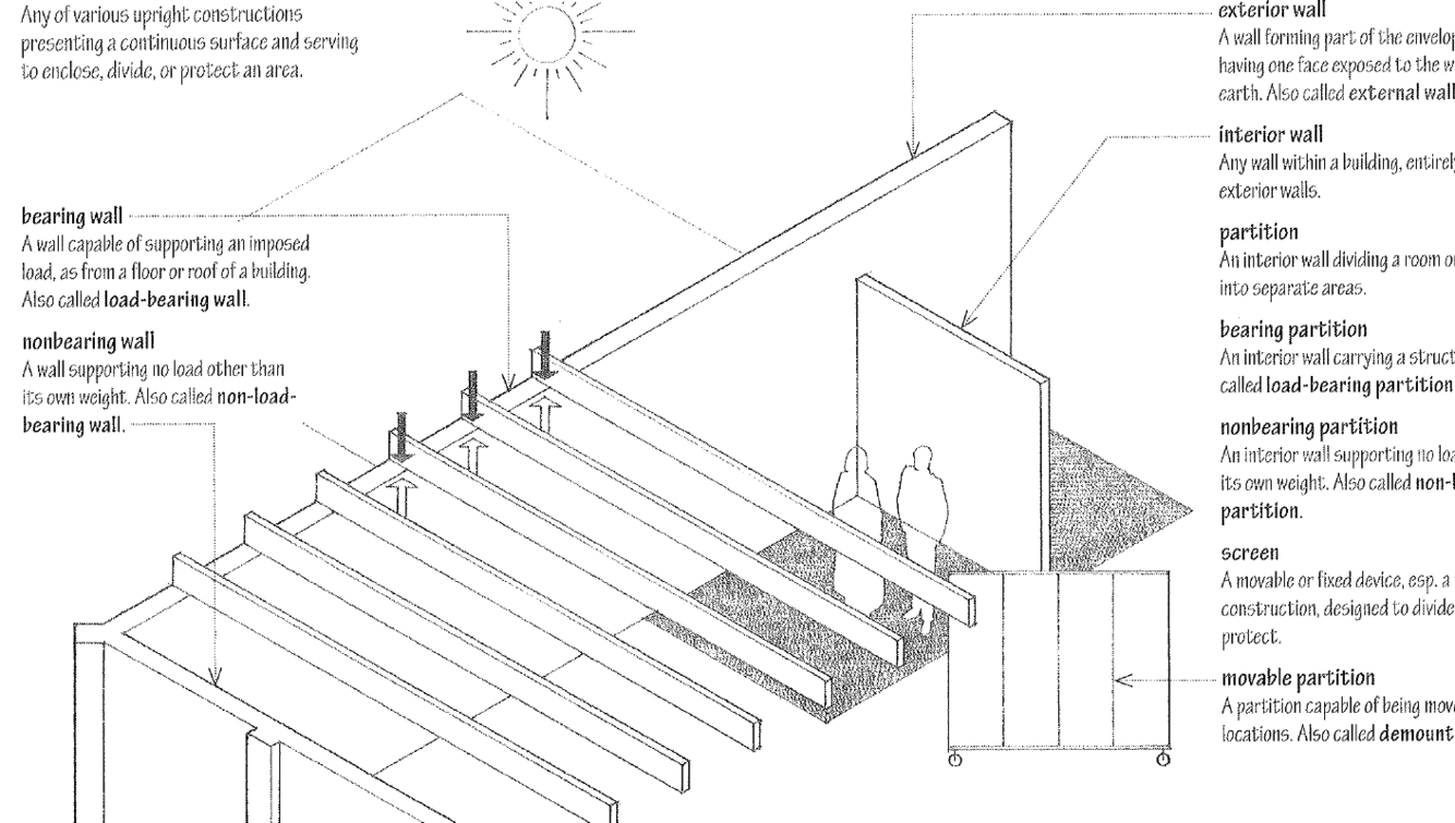 Any of various upright constructions presenting a continuous surface and serving to enclose, divide, or protect an area.