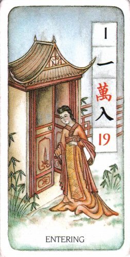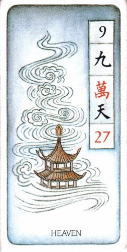 When the Heaven card appears next to that of the House, it represents the Temple; it only needs the Door (Entering 1 Wan) to obtain the picture of someone entering the Temple to take part in a solemn celebration.