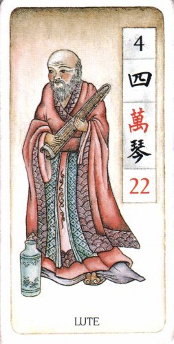 The performing arts Leisure Relaxation and a time for enjoyment after a day’s or a lifetime’s work. The literal significance of music is shown by the close proximity of Bamboo cards, particularly the Carp (4 Bamboo) or Water (6 Bamboo). With the Mushroom (8 Bamboo) there is an additional sense of the eccentric or ‘fringe’ performance. When the card is close to the industrious cards Jade (4 Circles) or the Insect (7 Circles) it symbolizes reward for honest toil.