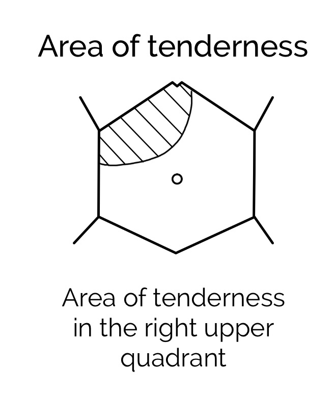 How can you draw “an area of abdominal tenderness”?