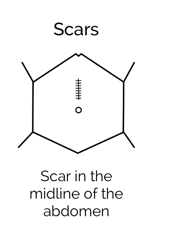 How can you draw abominal scarring?