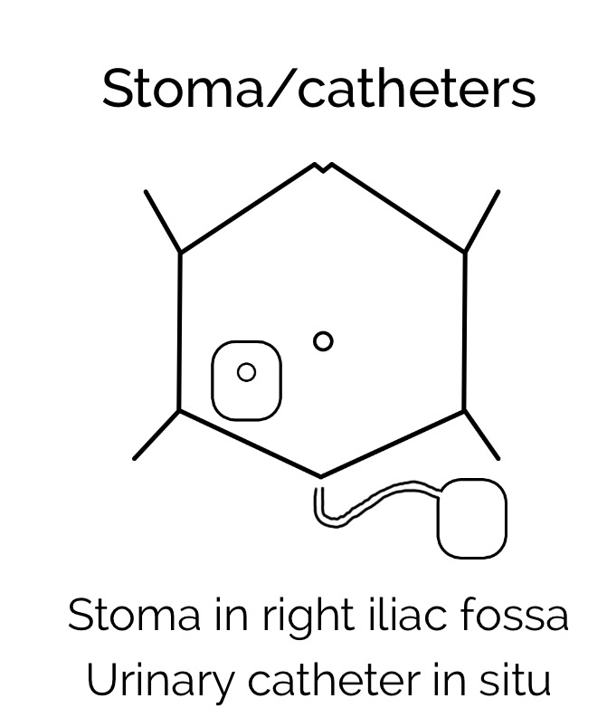 How can you draw stomas/catheters?