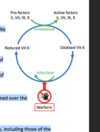 Vitamin K cycles between reduced (active) and oxidised (inactive) forms. Warfarin blocks recycling, leading to depletion of the active form.