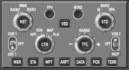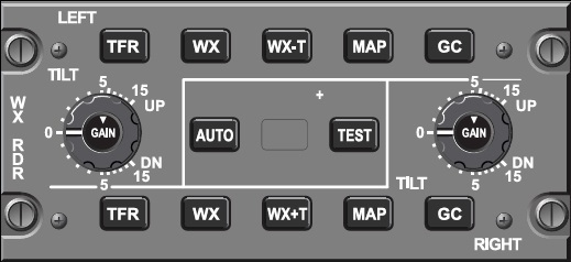 *WX+T: displays weather radar returns and turbulence (manual mode) or weather