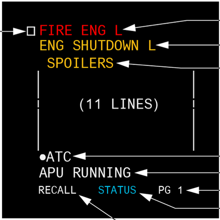 Status messages are displayed on the EICAS below the MEMO messages and must be cleared by maintenance before departure.