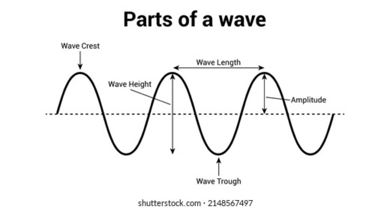 Wavelength - from one crest/ trough to another crest/trough