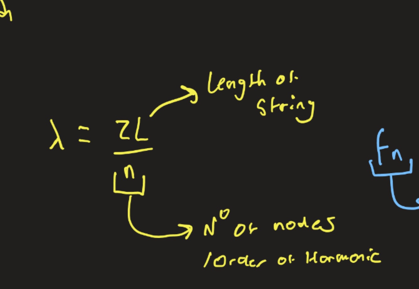 What is the formula you need the calculate the wavelength of nth harmonic of a stationary wave?