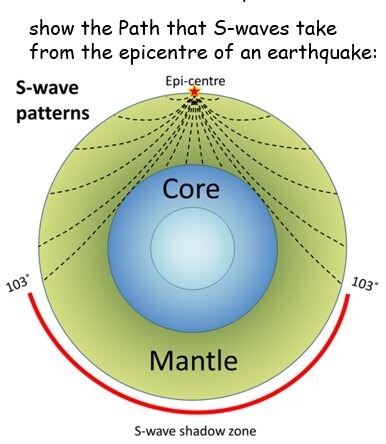 Seismic waves are produced by earthquakes. There are P - waves and S - waves. P-waves and S-waves provide evidence for the structure and size of the Earthβs core.