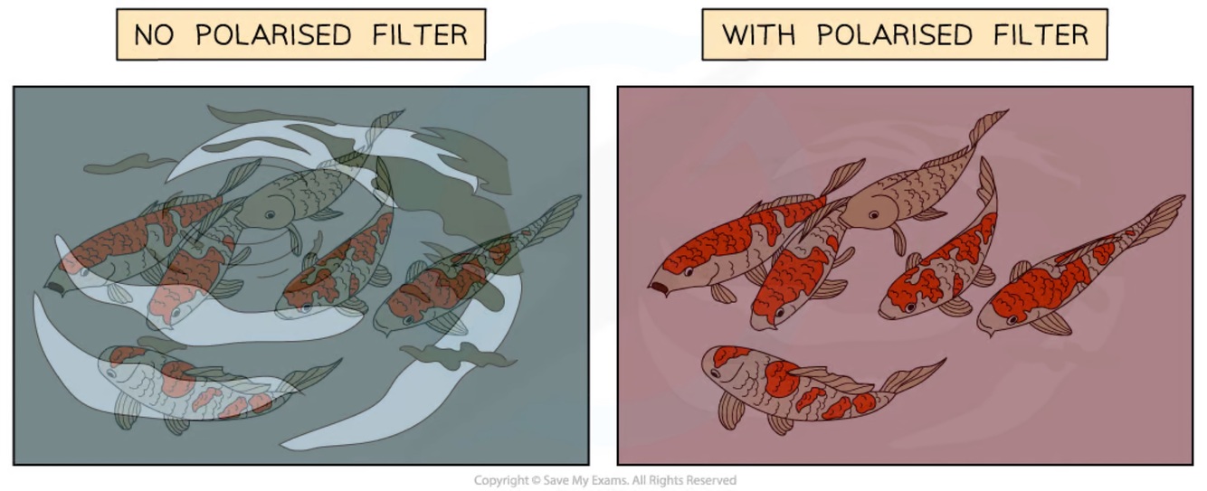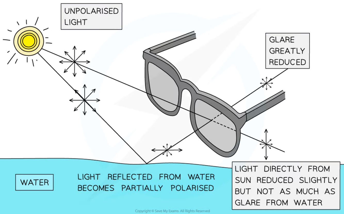When light is reflected off a reflective surface e.g water the light is partially polarised horizontally