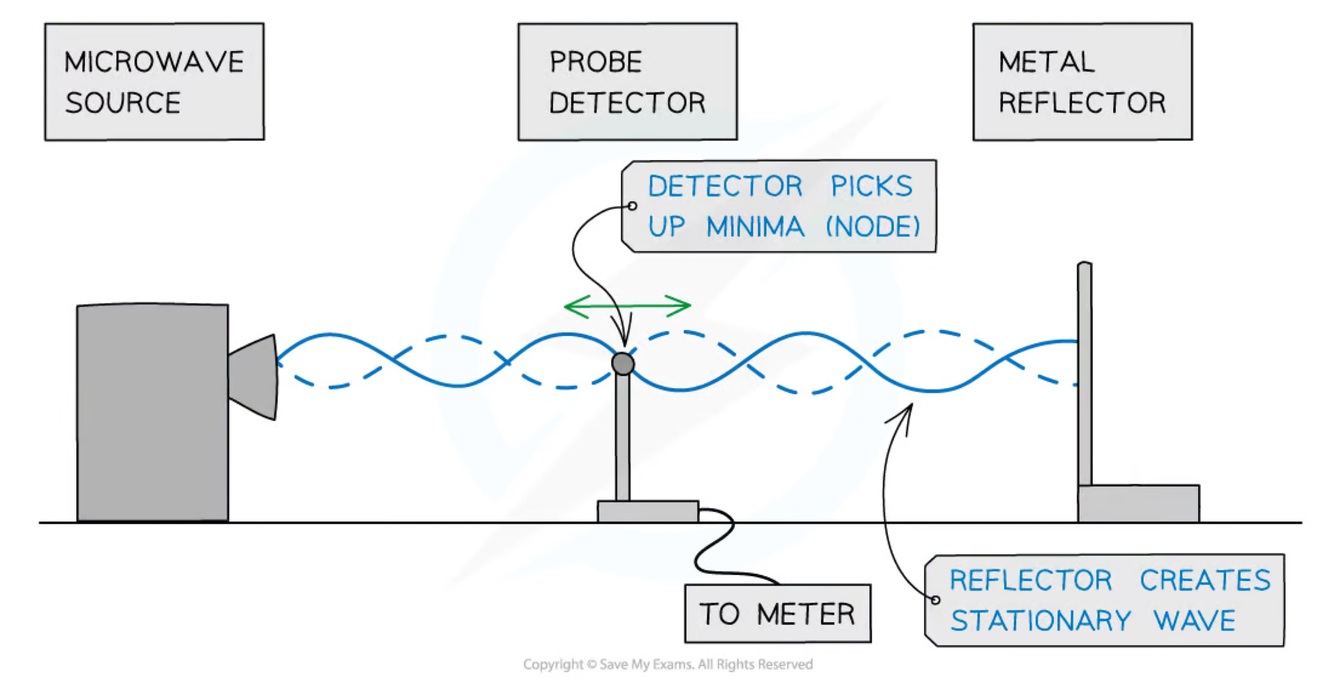 Place a microwave transmitter in line with a reflecting plate and a dectector between them.