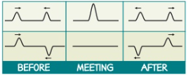 ⋅ the displacements of the waves combine at the instance where the waves cross