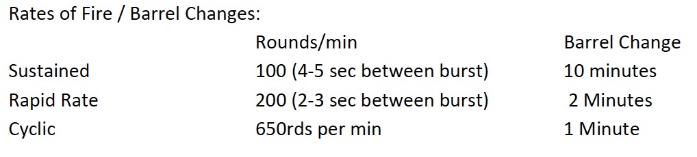 Rates of Fire / Barrel Changes: