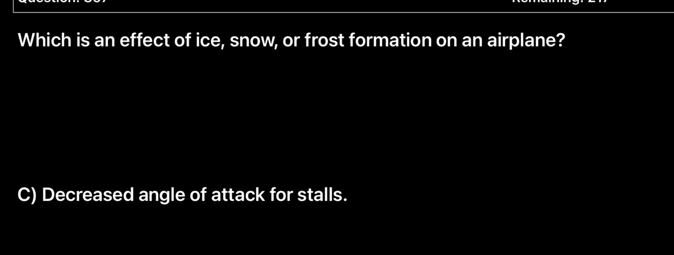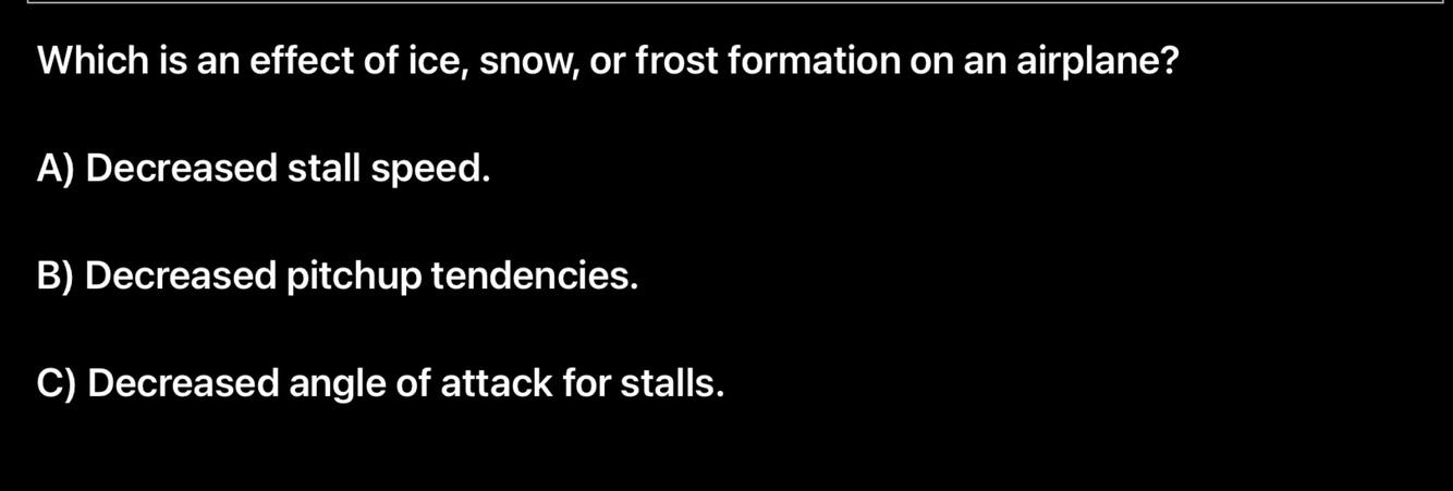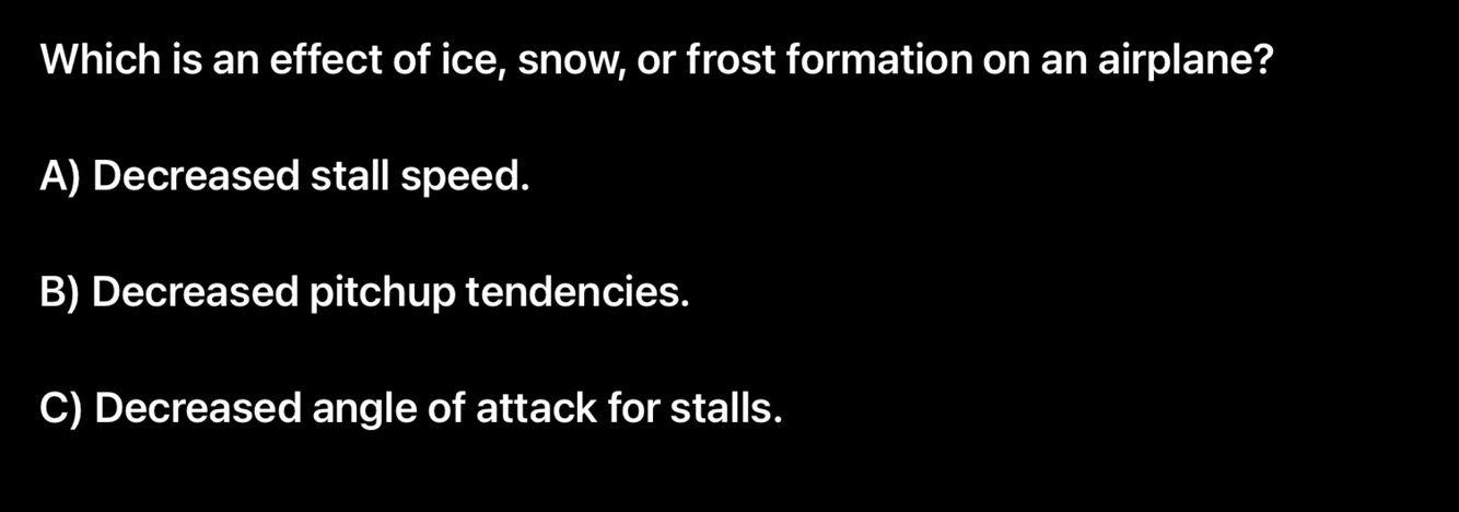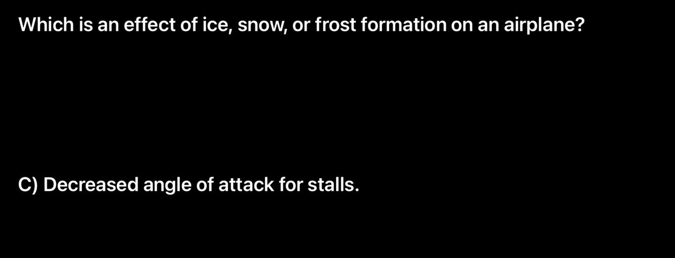 Which is an effect of ice, snow, or frost formation on an airplane?