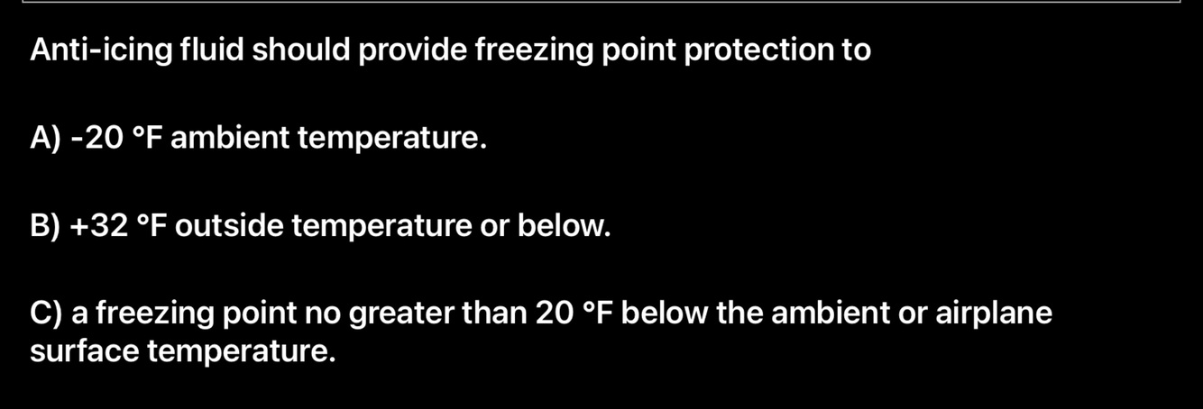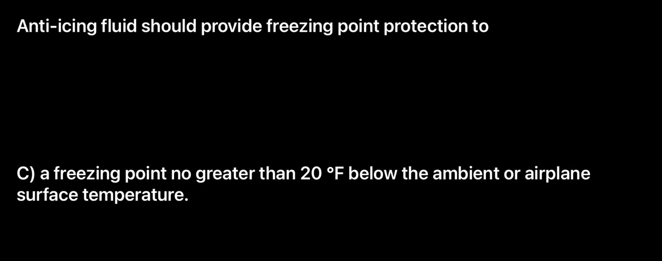 The practice developed and accepted by the North American air carrier industry using traditional North American fluids is to ensure that the freeze point of the remaining film is below ambient temperature by at least