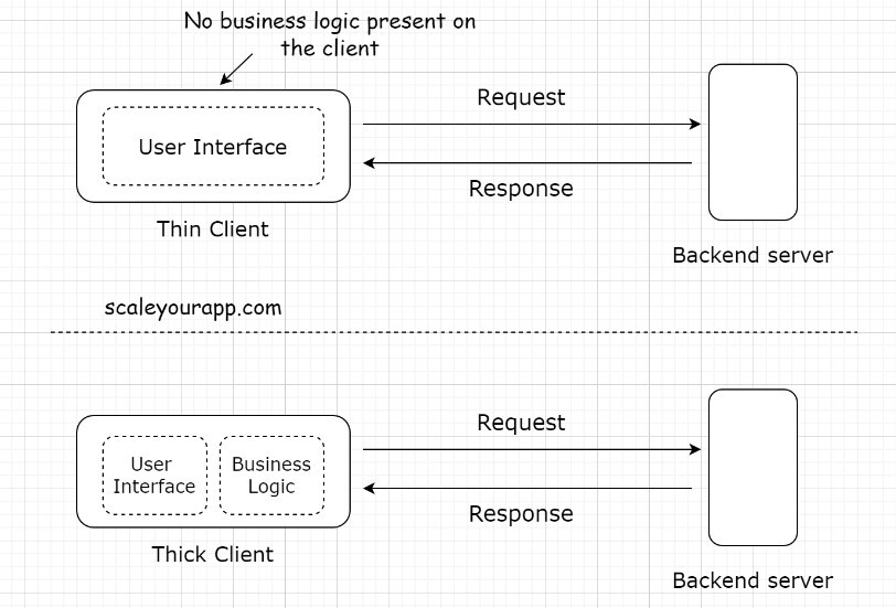 A thick client holds all or some part of the business logic. These are the two-tier applications.