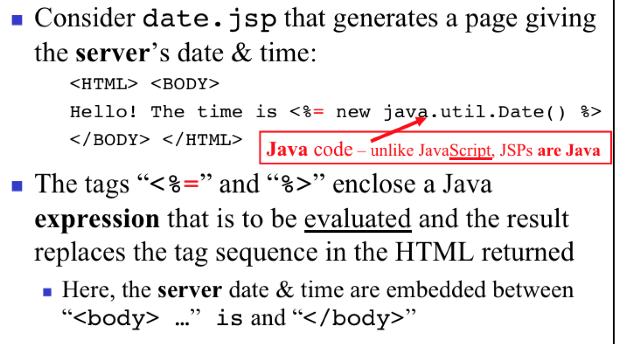 Using JSP how would you generate a page giving the server’s date & time?