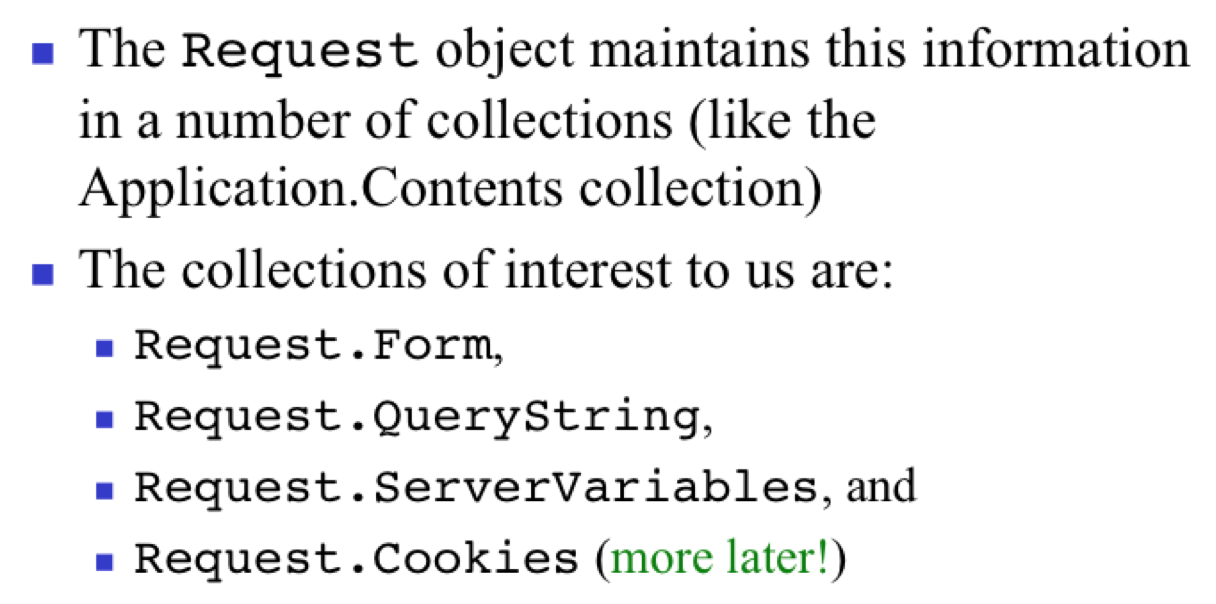 In ASPs what does the Request object maintain?