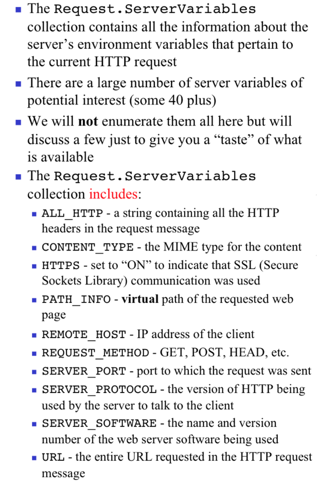 What does the Request.ServerVariables collection contain?