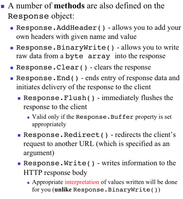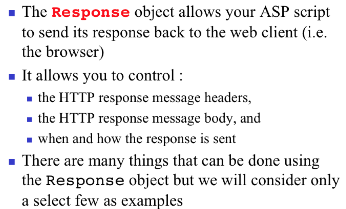 In general for ASP what is the Response and what does it allow you to control?