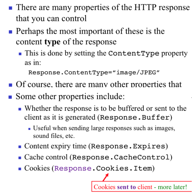 For ASP HTTP response, what are the most important things that can be controlled?