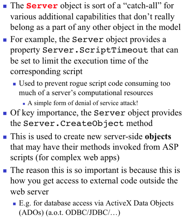 What is the Server object in ASP?