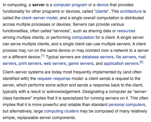 A server is a computer designed to process requests and deliver data to another computer over the internet or a local network.