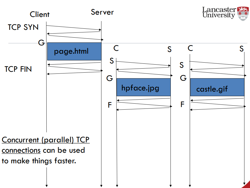 The “classic” approach in HTTP/1.0 is to use one HTTP request per TCP connection, serially.