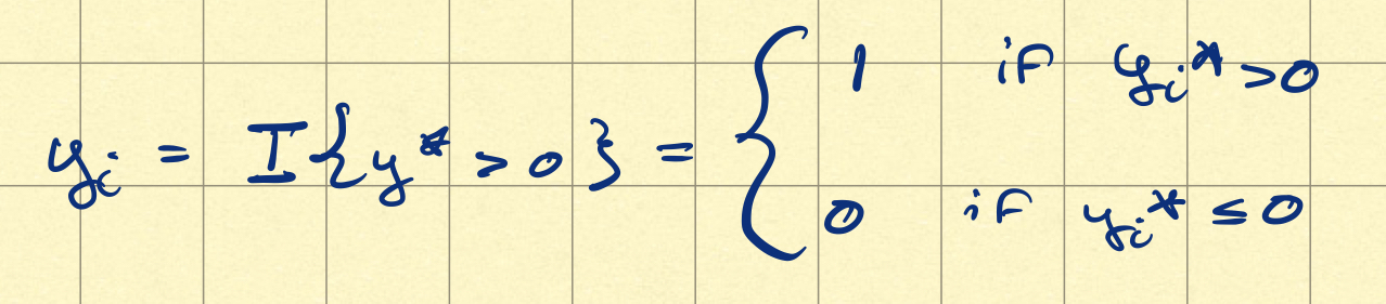 A latent variabale is a variable that is not directly observed but can be inferred. We can create the latent variable e.g. yi* for yi.