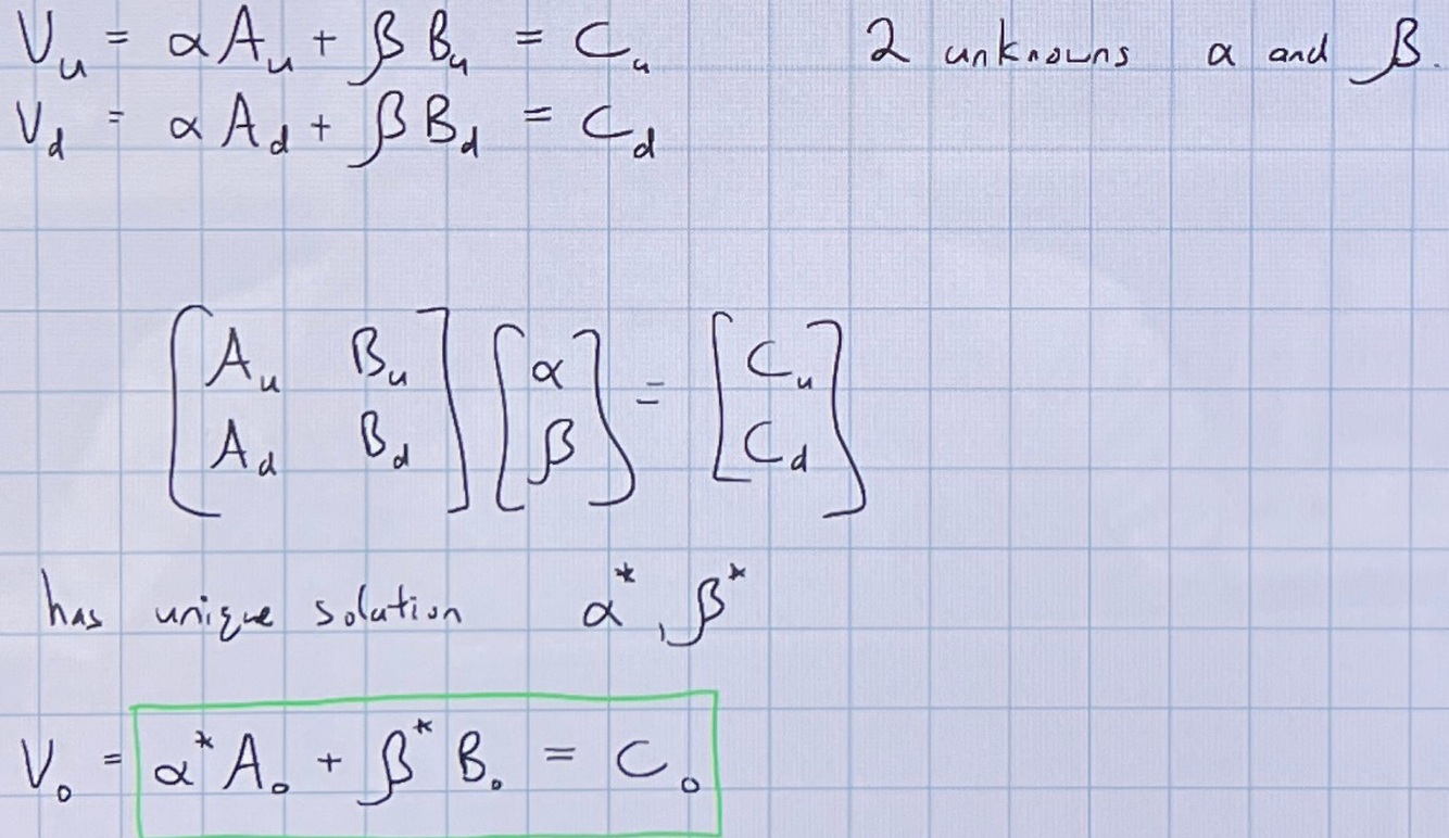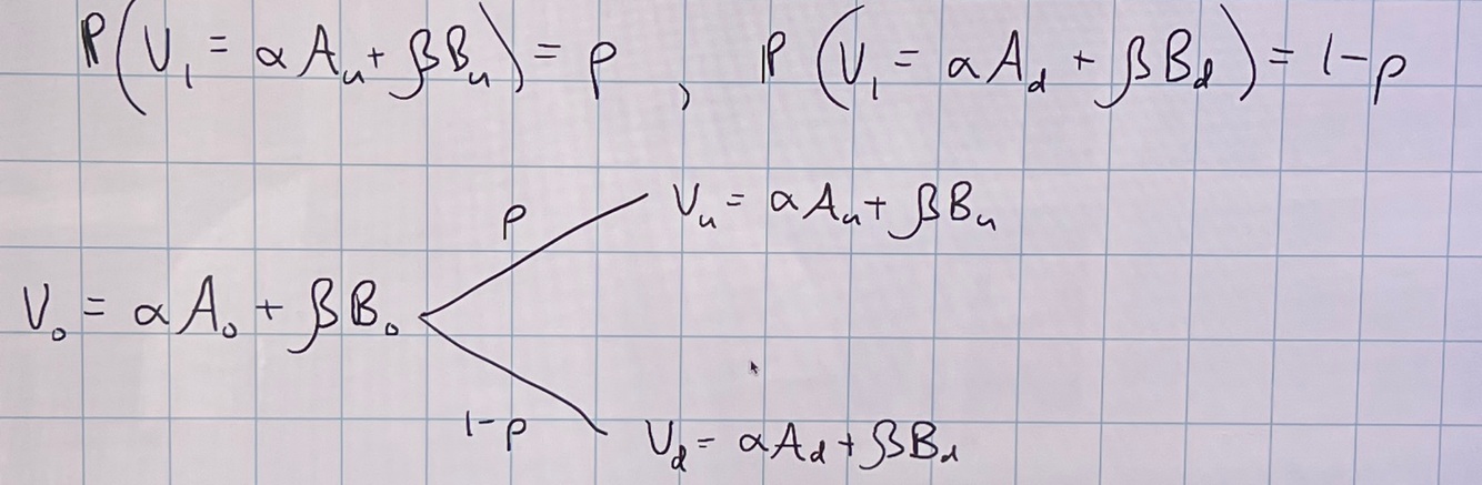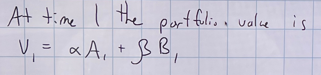 Equation for value of 2 asset portfolio at time 1