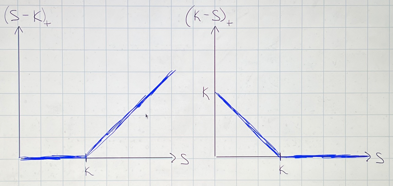 (S-K)+ = max{S-K, 0}