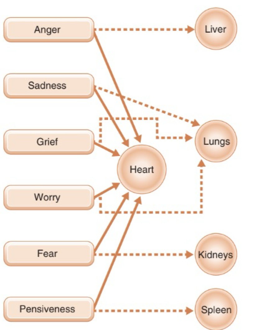 Internal emotions will affect the internal organs first (whereas external causes of disease affect the exterior first)