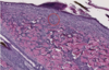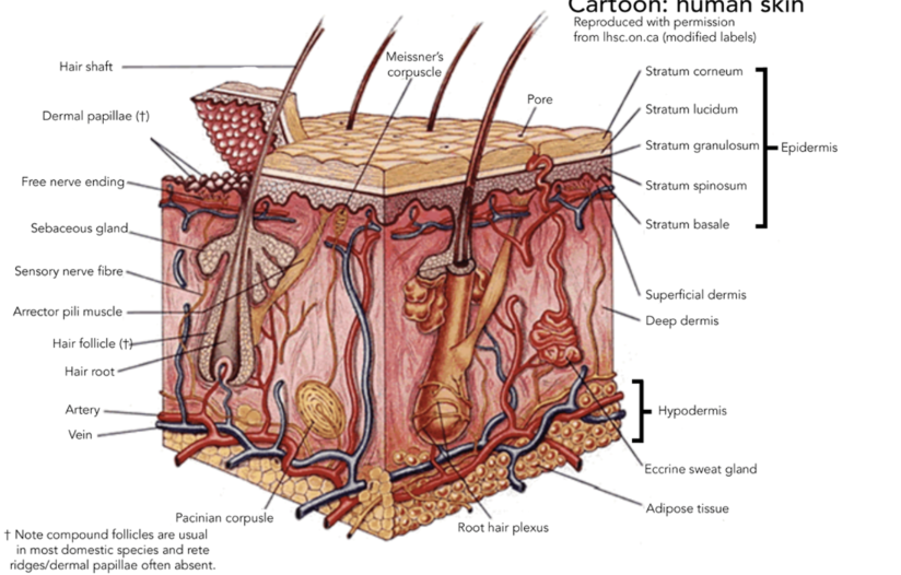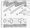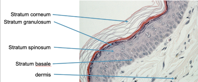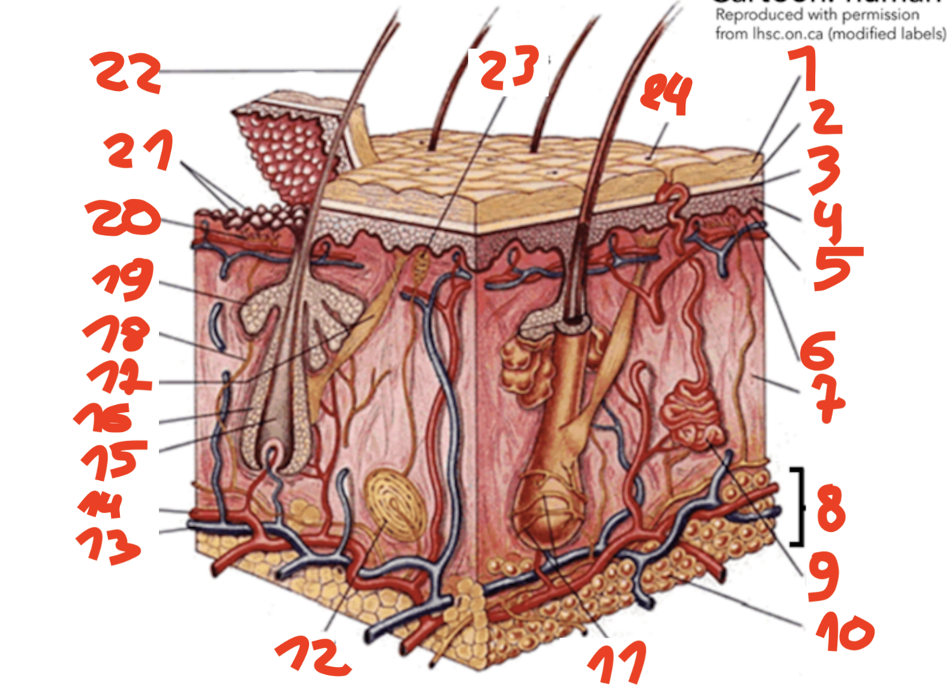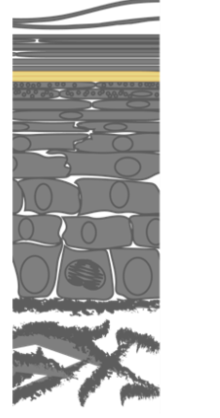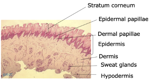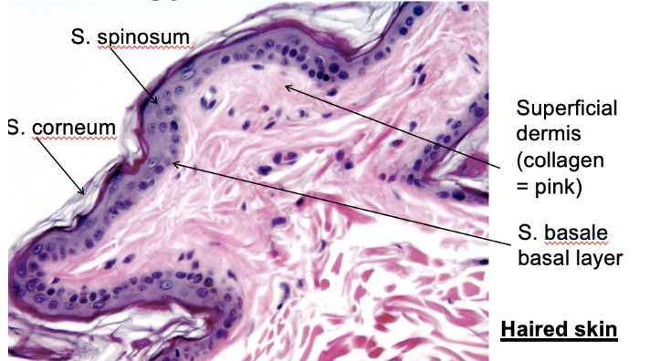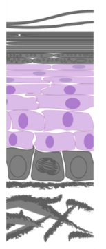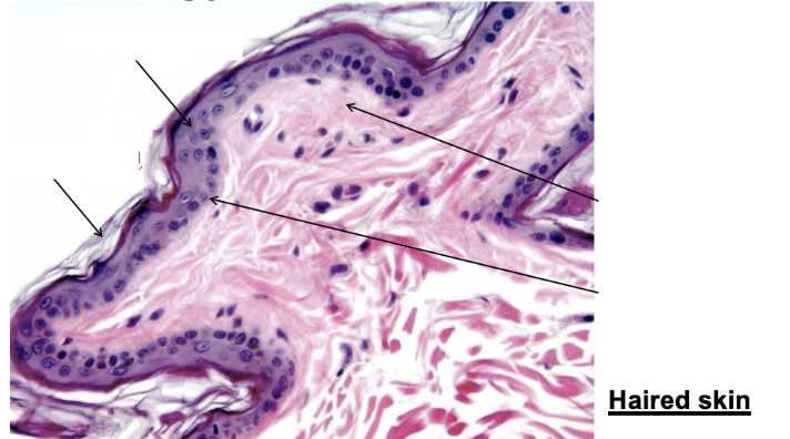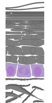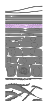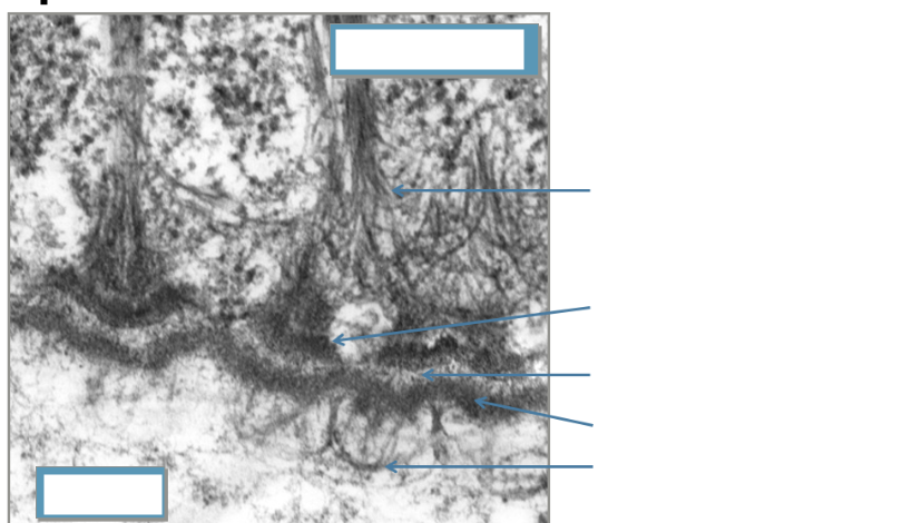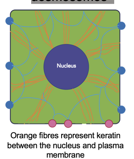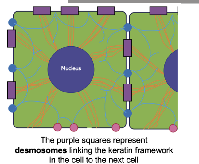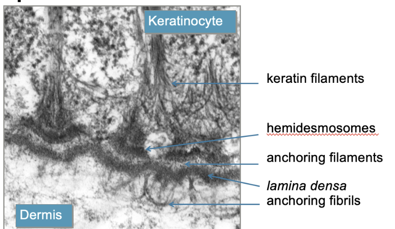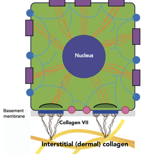 - Strong link between keratin intermediate filaments & interstitial collagen in dermis
