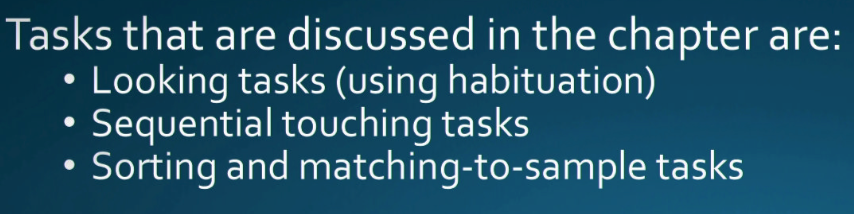 sequential touching–>young children (can not speak) shown a serie of objects and see which ones they picked out.