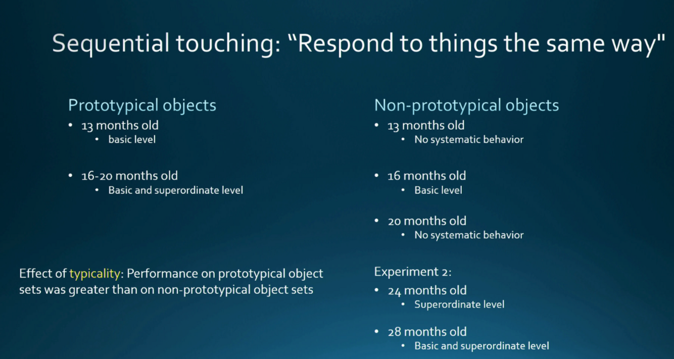 explain how via an experiment called sequential touching researcher can determine the abbility to categorize among young children.