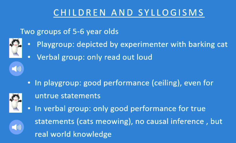 5-6 years old. both groups are using real world knowledge instead of logic.