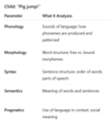 Define Morphology, Morpheme, Phonology, Phonemes, Syntax, Semantics, and Pragmatics