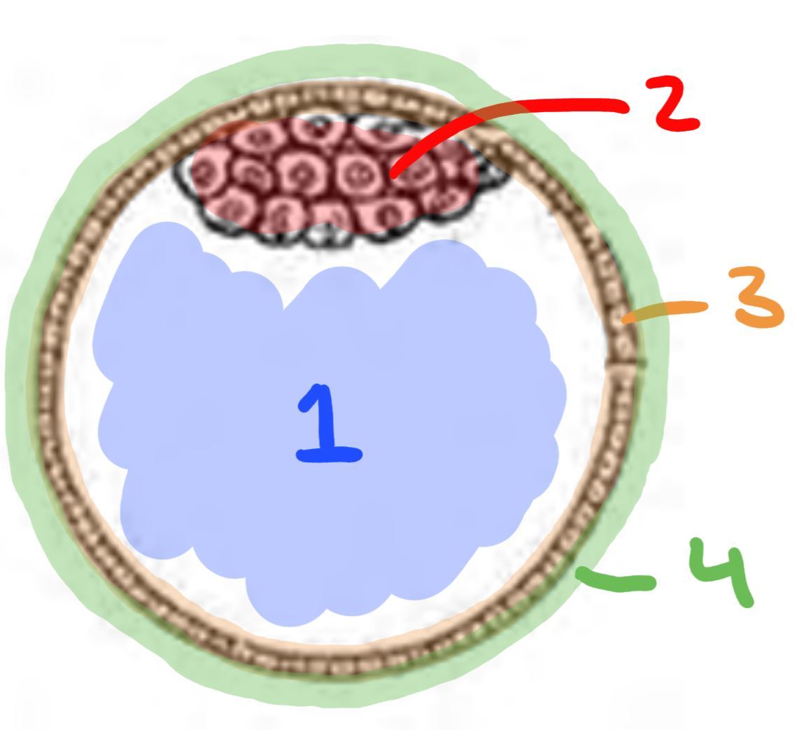 Label the parts of the blastocyst. What week does this happen?