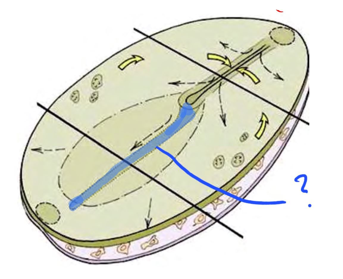 What is the part highlighted in blue? What layer is it growing in? What is its purpose? What does it become the template for?