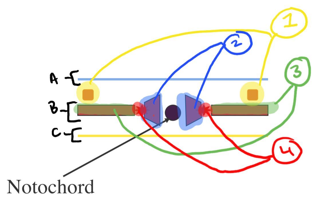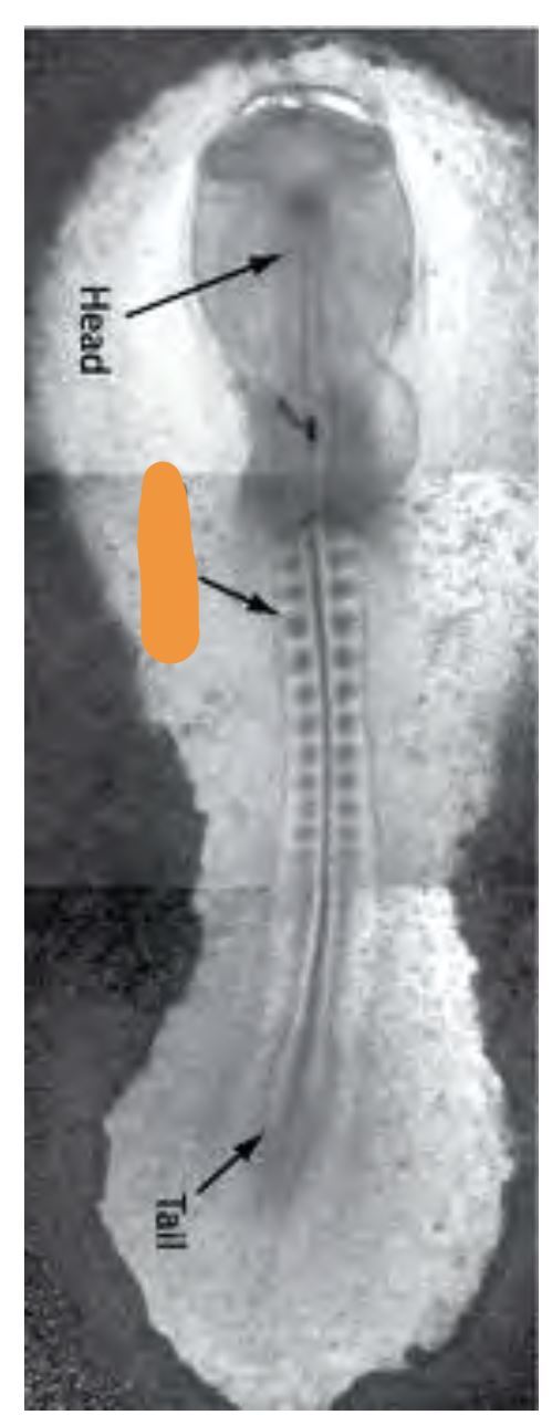 2. Paraxial Mesoderm: (runs parallell to axis) Cartilage, Skeletal Muscle and Dermis