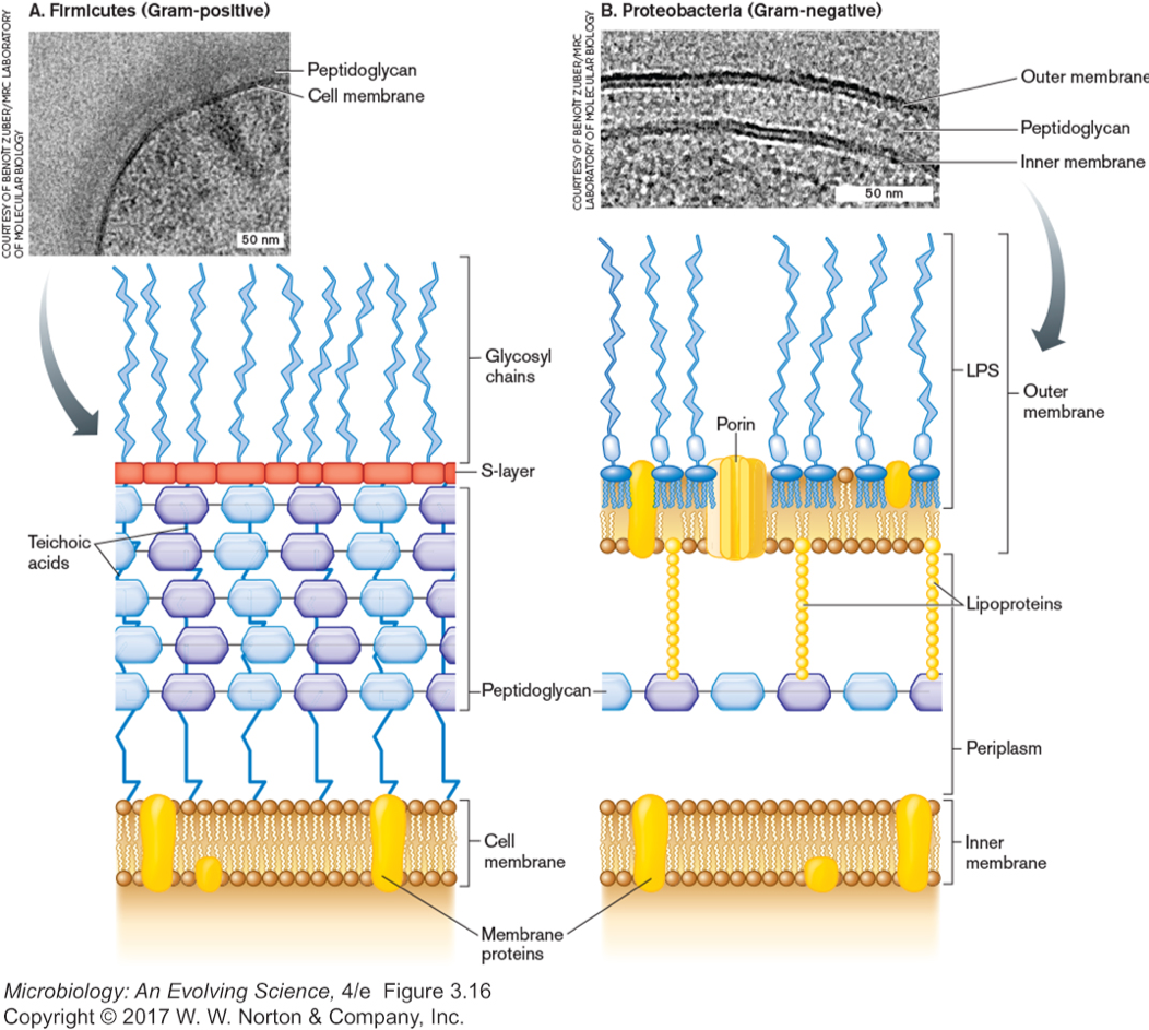 Structure of Cell envelopes: Gram positive vs Gram negative